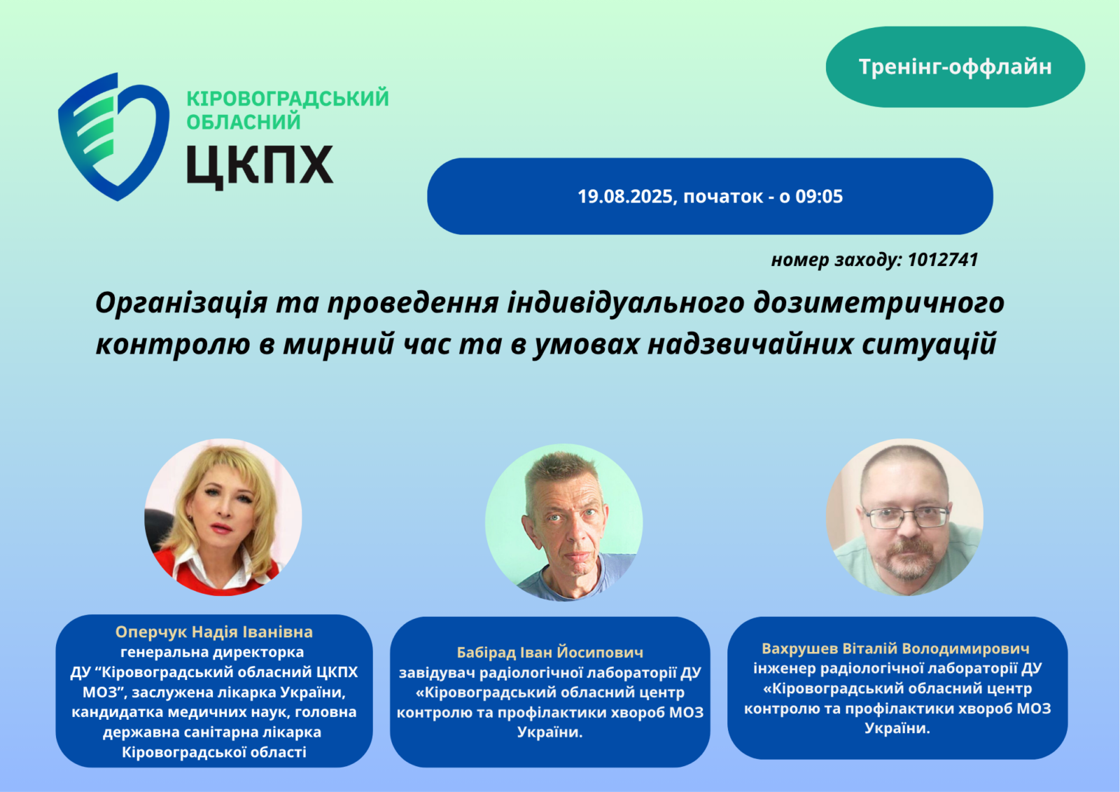 Тренінг на тему: Організація та проведення індивідуального дозиметричного контролю в мирний час та в умовах надзвичайних ситуацій (№ 1012741)