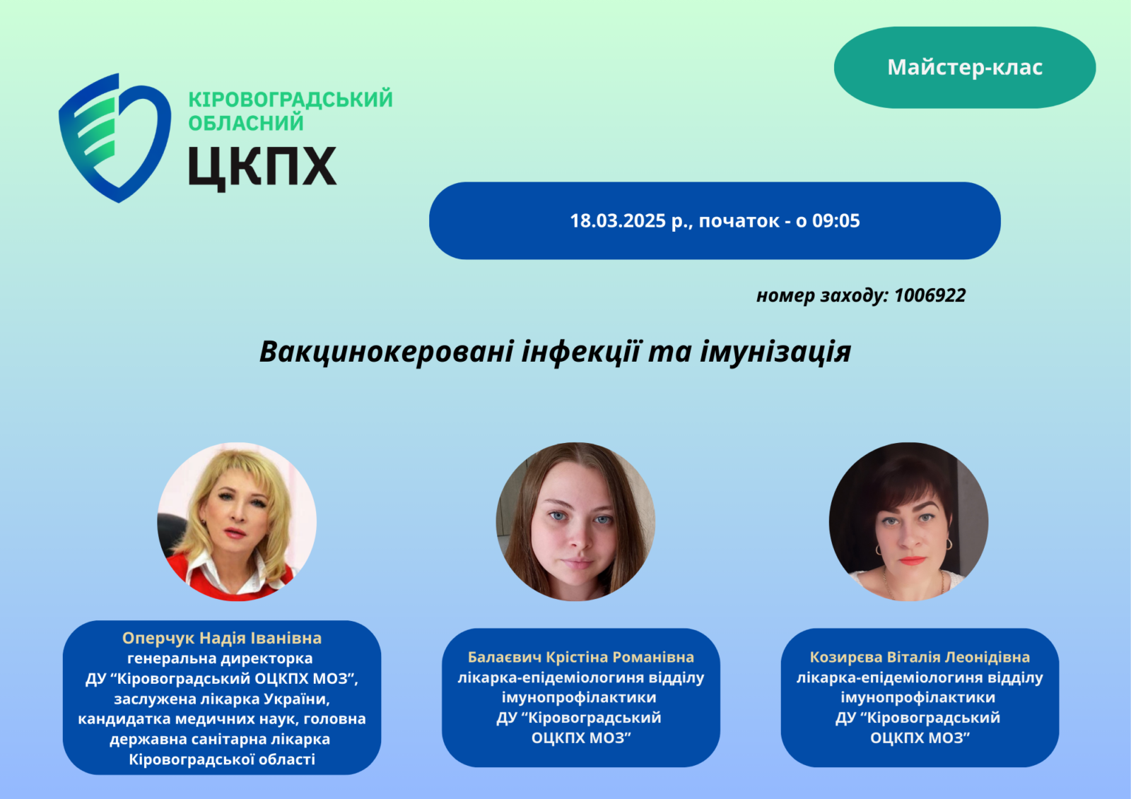 Майстер-клас на тему: Вакцинокеровані інфекції та імунізація (№ 1006922)