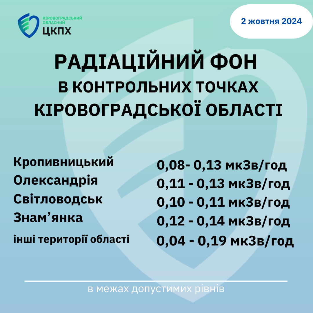 Радіаційний фон у місті Кропивницький та Кіровоградській області станом на 08:30 сьогодні, 02.10.2024