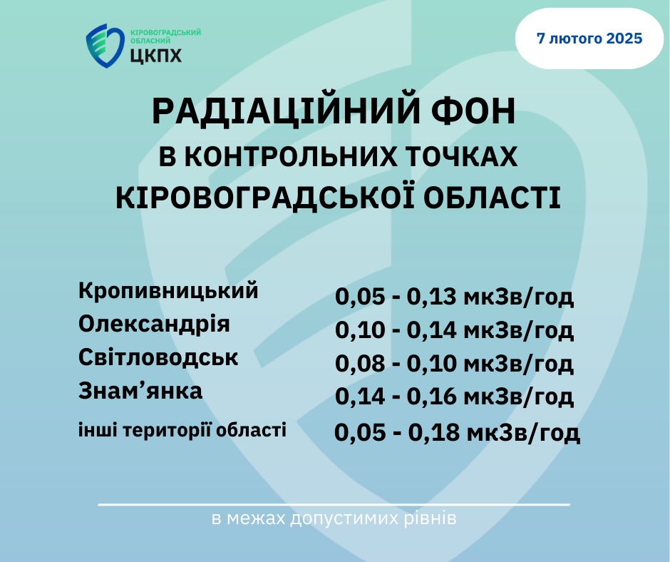 Радіаційний фон у місті Кропивницький та Кіровоградській області станом на 08:30 сьогодні, 07.02.2025
