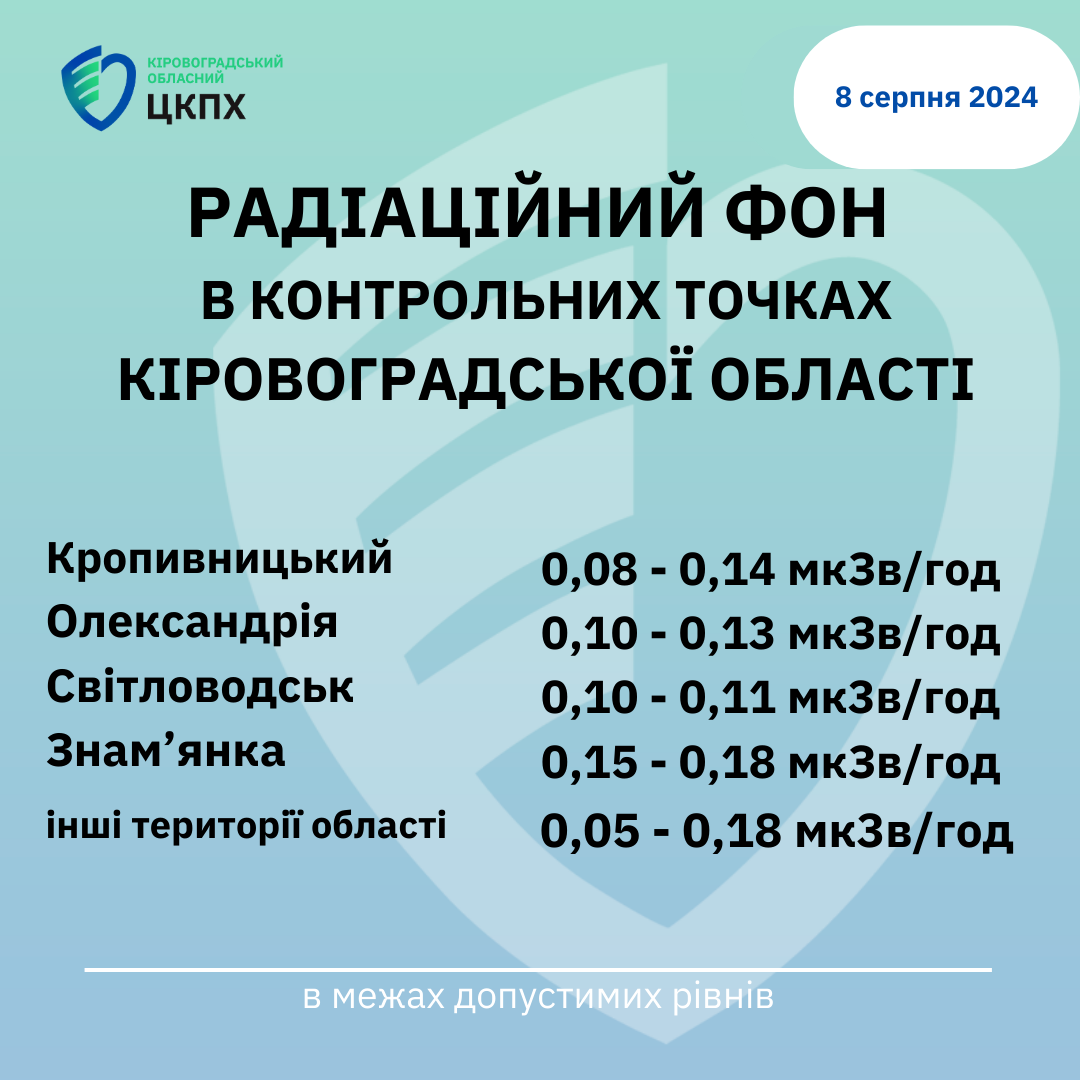 Радіаційний фон у місті Кропивницький та Кіровоградській області станом на 08:30 сьогодні, 08.08.2024
