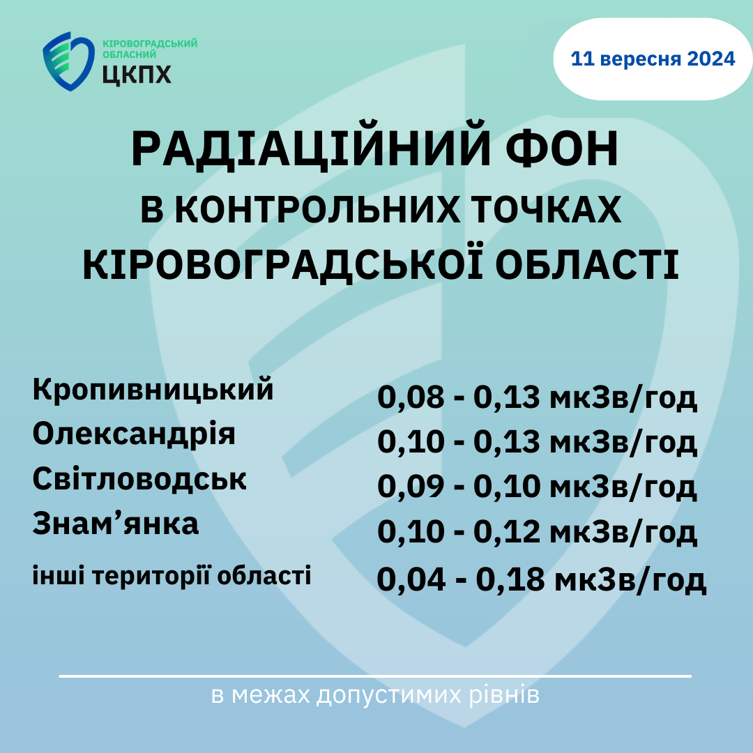 Радіаційний фон у місті Кропивницький та Кіровоградській області станом на 08:30 сьогодні, 11.09.2024