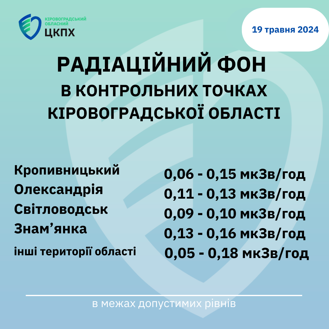 Радіаційний фон у місті Кропивницький та Кіровоградській області станом на 08:30 сьогодні, 19.05.2024