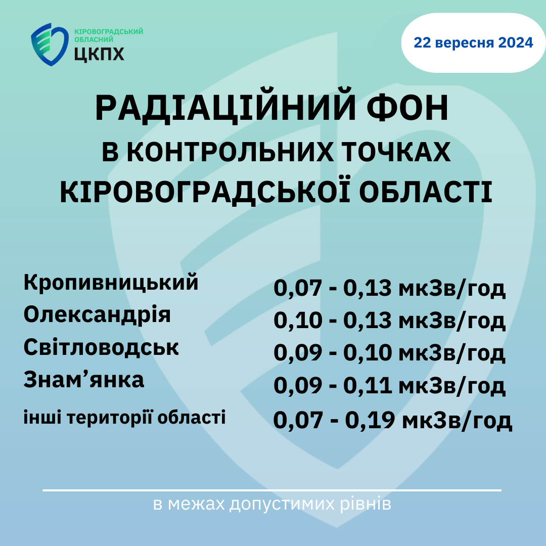 Радіаційний фон у місті Кропивницький та Кіровоградській області станом на 08:30 сьогодні, 22.09.2024