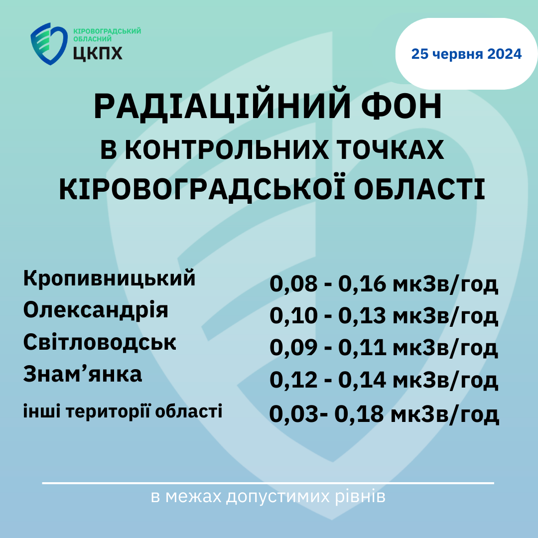 Радіаційний фон у місті Кропивницький та Кіровоградській області станом на 08:30 сьогодні, 25.06.2024