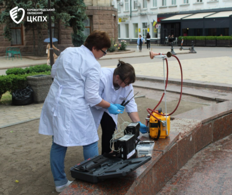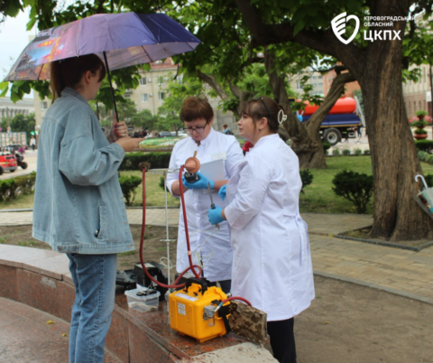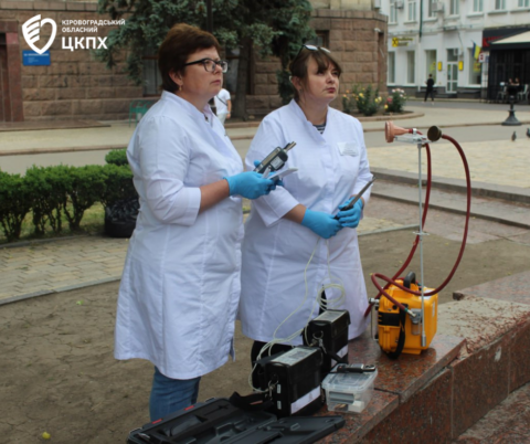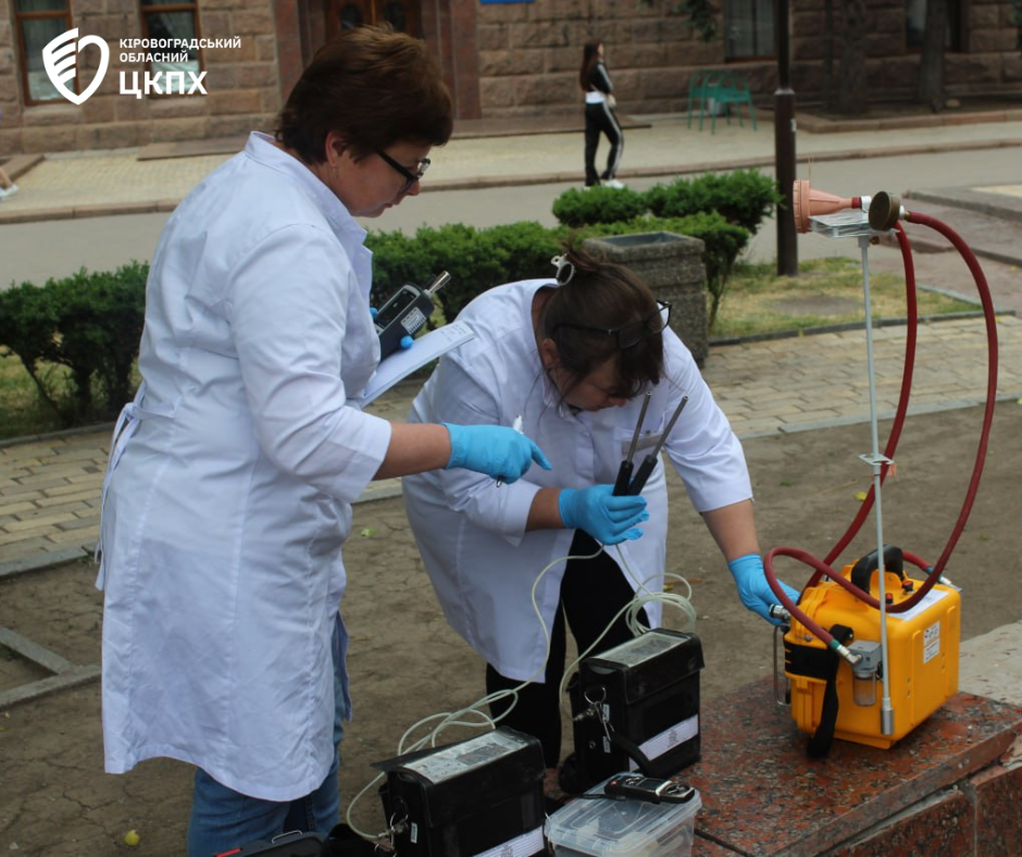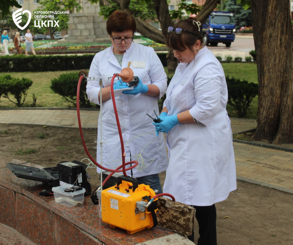 Так 27 травня фахівці санітарно-гігієнічної лабораторії відділу фізичних та хімічних факторів Центру здійснили заміри проб повітря у середмісті Кропивницького.