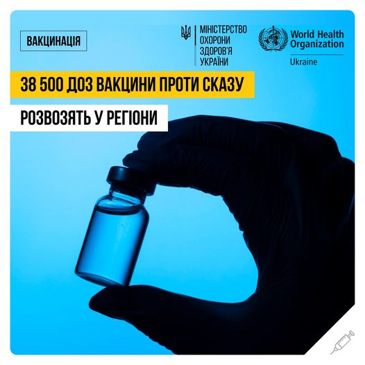 38 500 доз протирабічної вакцини Україна отримала в межах співпраці Міністерства охорони здоров’я та World Health Organization Ukraine.