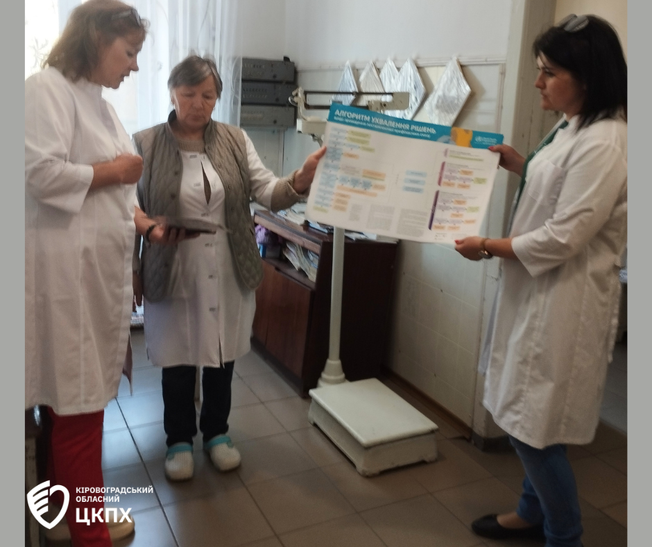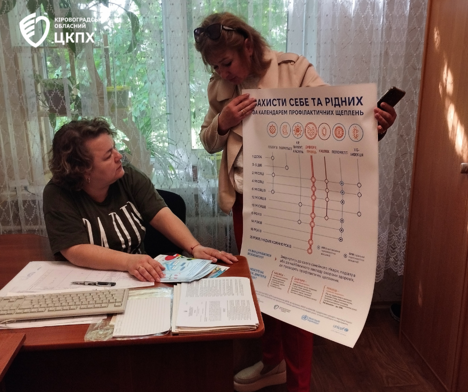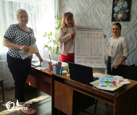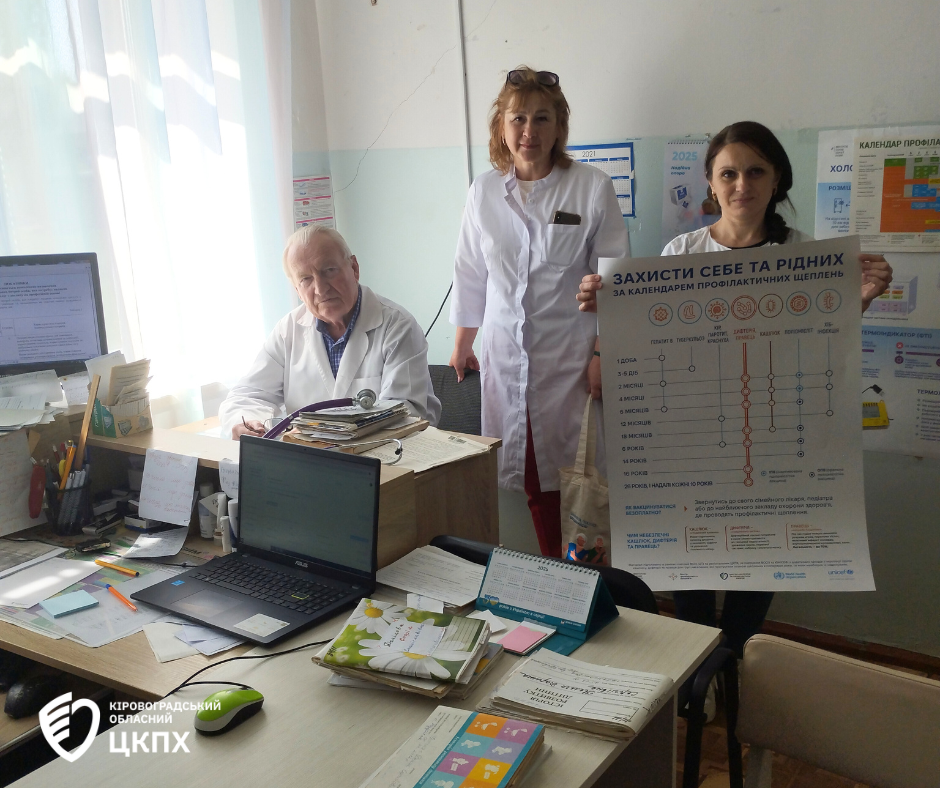 Провели зустріч із медичними працівниками (сімейними лікарями-педіатрами та їх помічниками – медичними сестрами) з питань вакцинації населення від вакцинокерованих інфекцій, щеплень АКД-м – ч/з 10 років впродовж усього життя. Розповсюдили інформаційні буклети серед медичних працівників «Корисні інформаційні ресурси про вакцинацію для медичних працівників», роздали флаєри пацієнтам «Календар профілактичних щеплень» та «Вакцинуйтеся від дифтерії, правця та кашлюку».