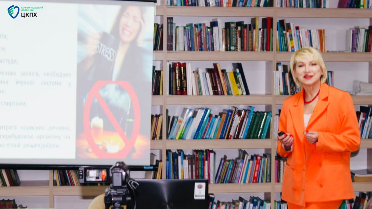 Головна державна санітарна лікарка Кіровоградської області Надія Оперчук в обласній універсальній науковій бібліотеці імені Дмитра Чижевського провела лекцію на тему: «Авітаміноз. Причини, симтоми, лікування, профілактика».