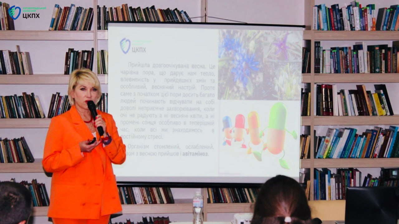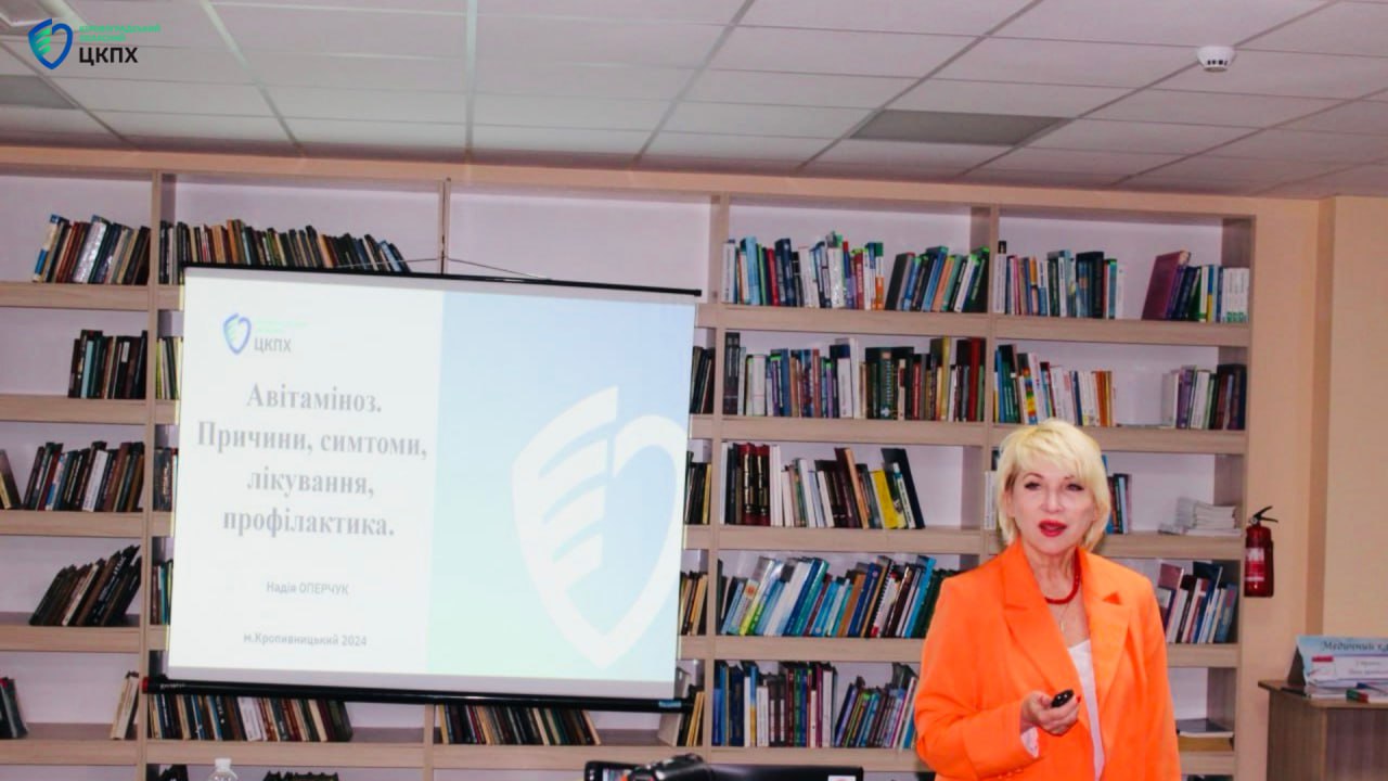 Головна державна санітарна лікарка Кіровоградської області Надія Оперчук в обласній універсальній науковій бібліотеці імені Дмитра Чижевського провела лекцію на тему: «Авітаміноз. Причини, симтоми, лікування, профілактика».