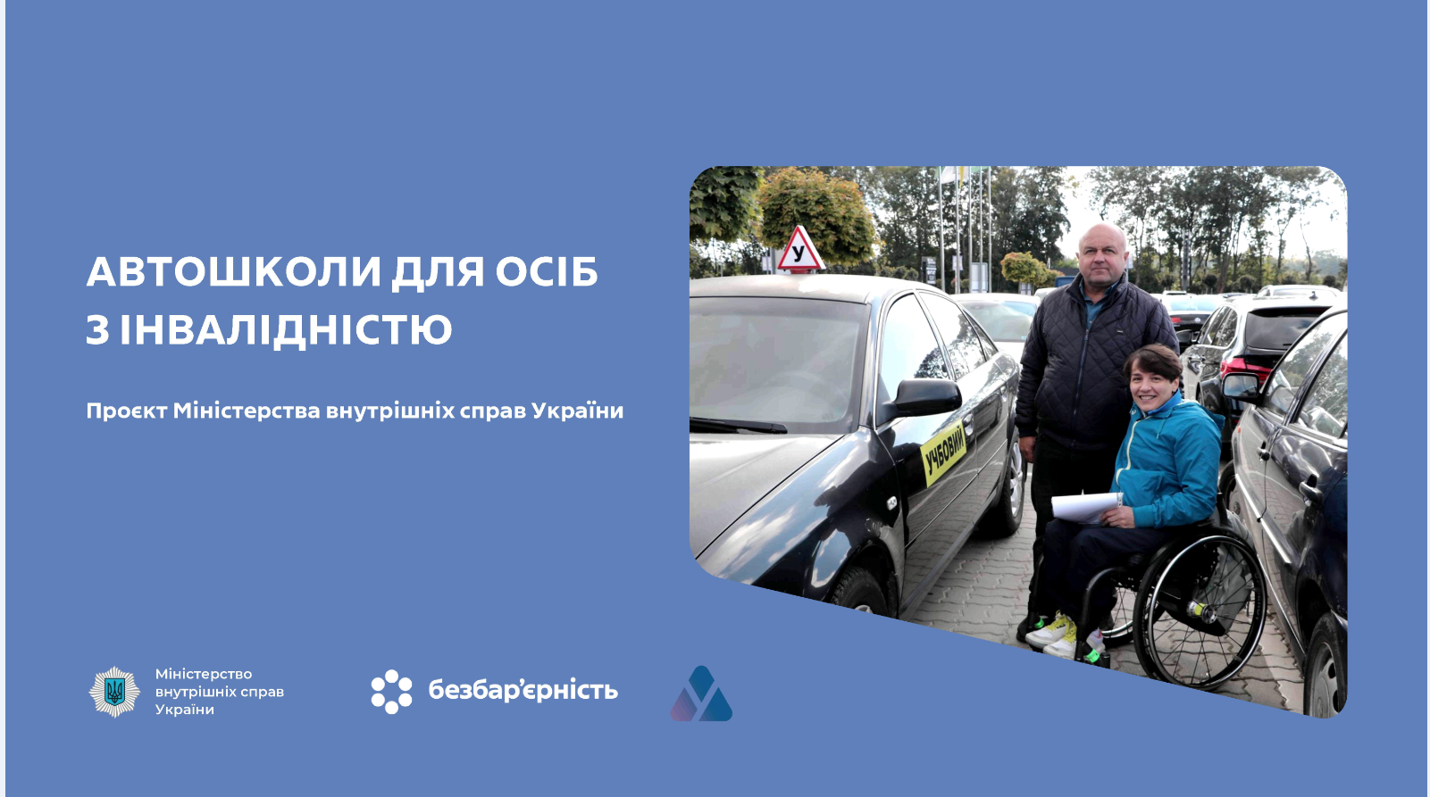 В Україні запрацювали спеціальні автошколи для осіб з інвалідністю. Автошкола пропонує: адаптовані навчальні програми, сучасні автомобілі з ручним керуванням, досвідчених викладачів, інклюзивні приміщення, зручний графік, сертифіковані навчальні автомобілі, навчання у змішаних інклюзивних групах або індивідуально, комфортний простір, підтримка та консультування
