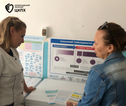 Помічниця лікаря-епідеміолога поспілкувалася з медпрацівниками про дотримання холодового ланцюга при транспортуванні та зберіганні імунобіологічних препаратів і контроль температурного режиму холодильників.