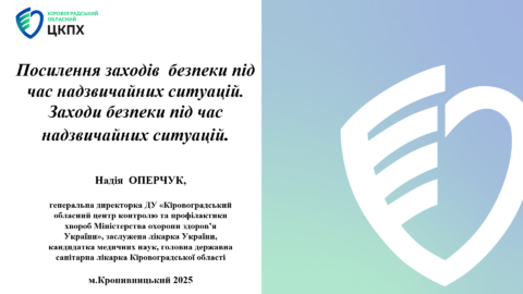 Головна державна санітарна лікарка Кіровоградської області Надія Оперчук разом із завідувачкою відділу моніторингу та реагування на небезпеки Іриною Луняченко організували та провели онлайннавчання на тему: «Посилення заходів безпеки під час надзвичайних ситуацій».