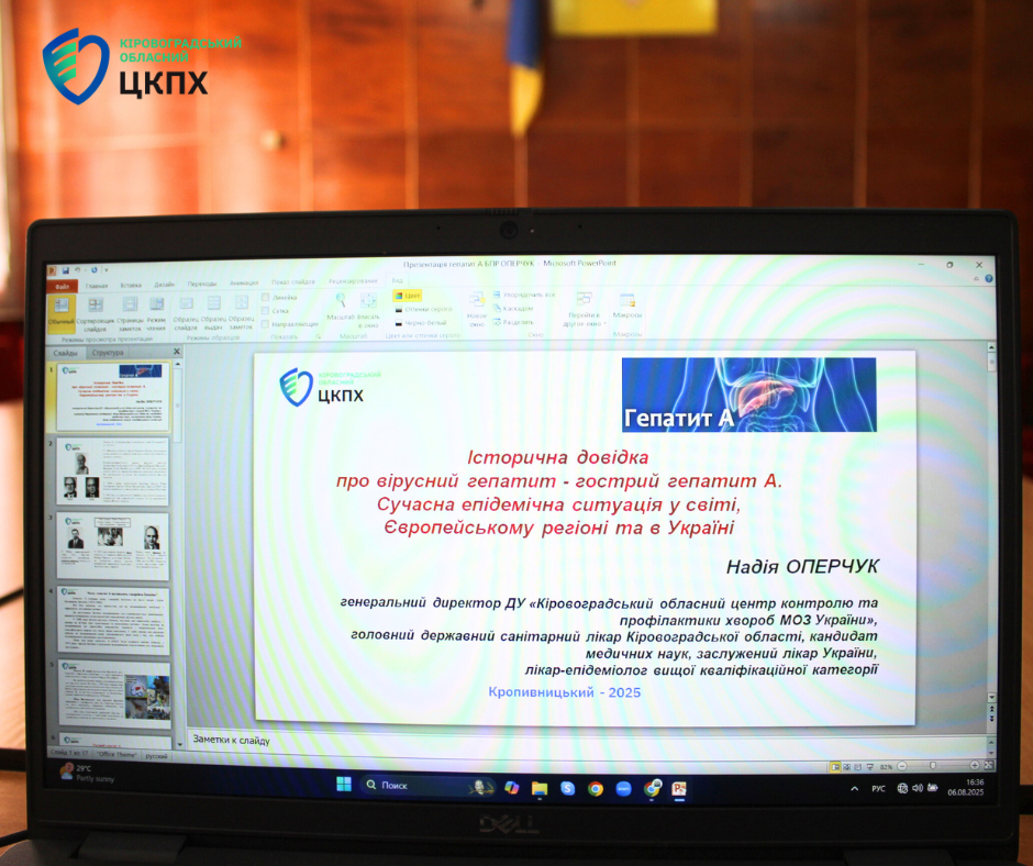 Головна державна санітарна лікарка Кіровоградської області Надія Оперчук разом із завідувачкою відділу епідеміологічного нагляду та профілактики інфекційних хвороб Тамарою Ланкмілєр, завідувачкою вірусологічної лабораторії Світланою Сошко та лікаркою-епідеміологинею відділу імунопрофілактики Віталією Козирєвою організували та провели вебінар на тему: «Вірусний гепатит: гострий гепатит А. Основи епідеміології, клініки, лабораторної діагностики, організація та проведення протиепідемічних заходів у вогнищі, заходи профілактики, у т.ч. імунопрофілактика».