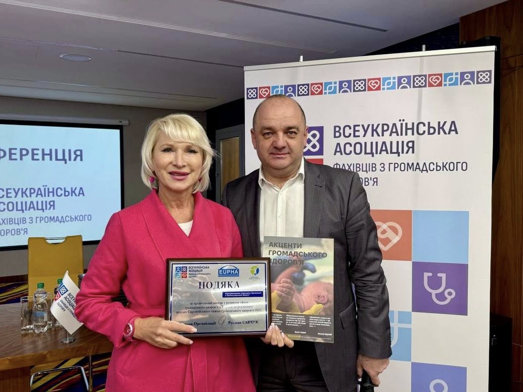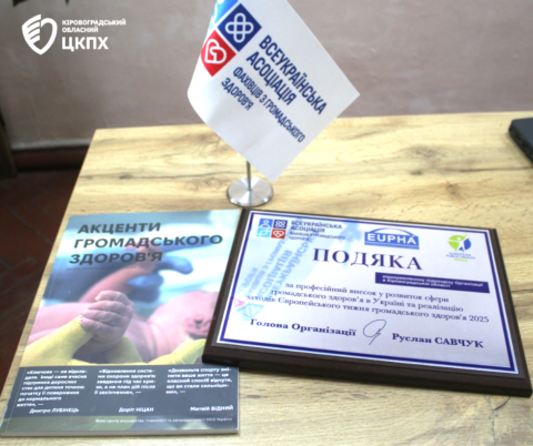 Відокремлений підрозділ Всеукраїнської асоціації фахівців з громадського здоров’я в Кіровоградській області відзначили подякою за професійний внесок у розвиток сфери громадського здоров’я в Україні та реалізацію заходів Європейського тижня громадського здоров’я у 2025 році.