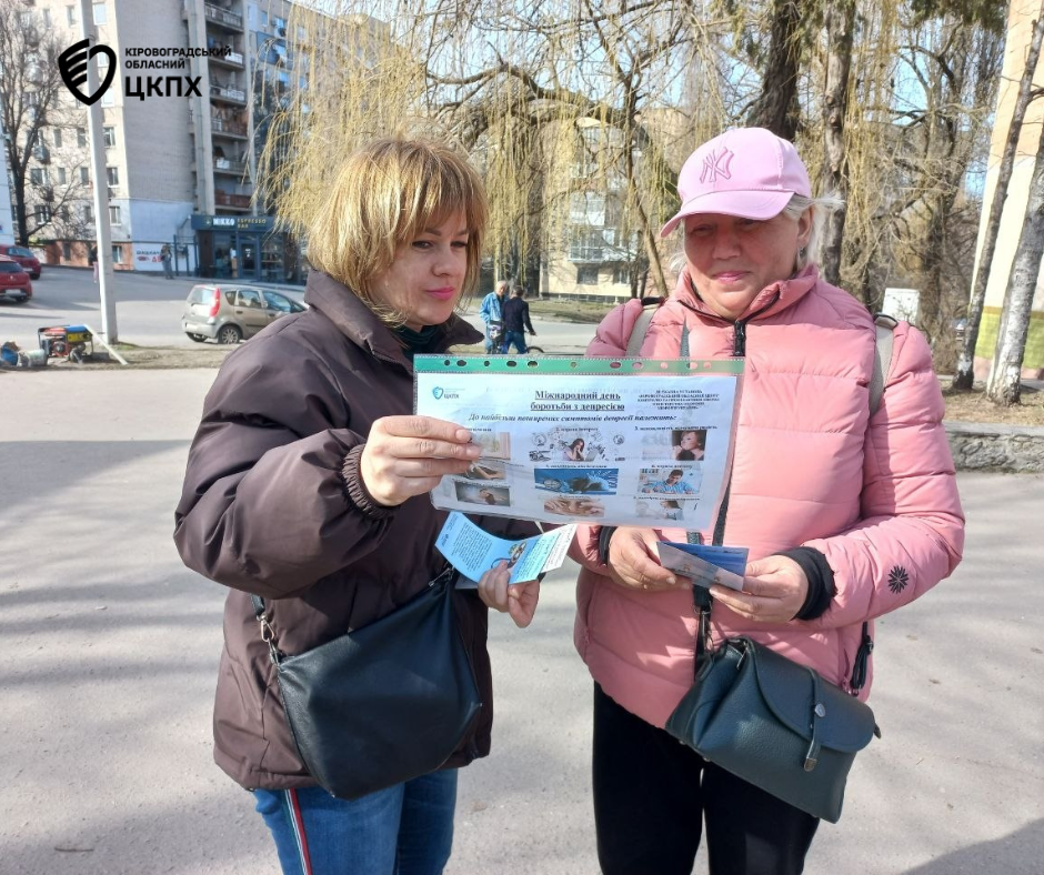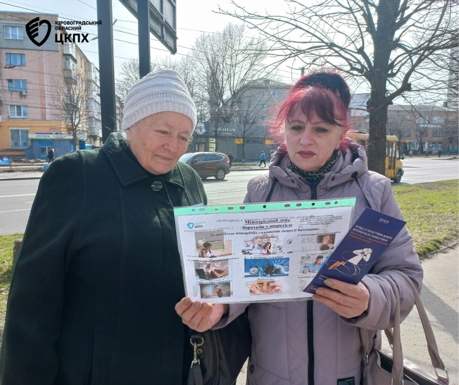 До Міжнародного дня боротьби з депресією фахівчині відділу епідеміологічного нагляду та профілактики неінфекційних хвороб Кіровоградського обласного центру контролю та профілактики хвороб Ольга Агапова та Ніна Синько провели інформаційно-просвітницьку роботу серед жителів міста.
