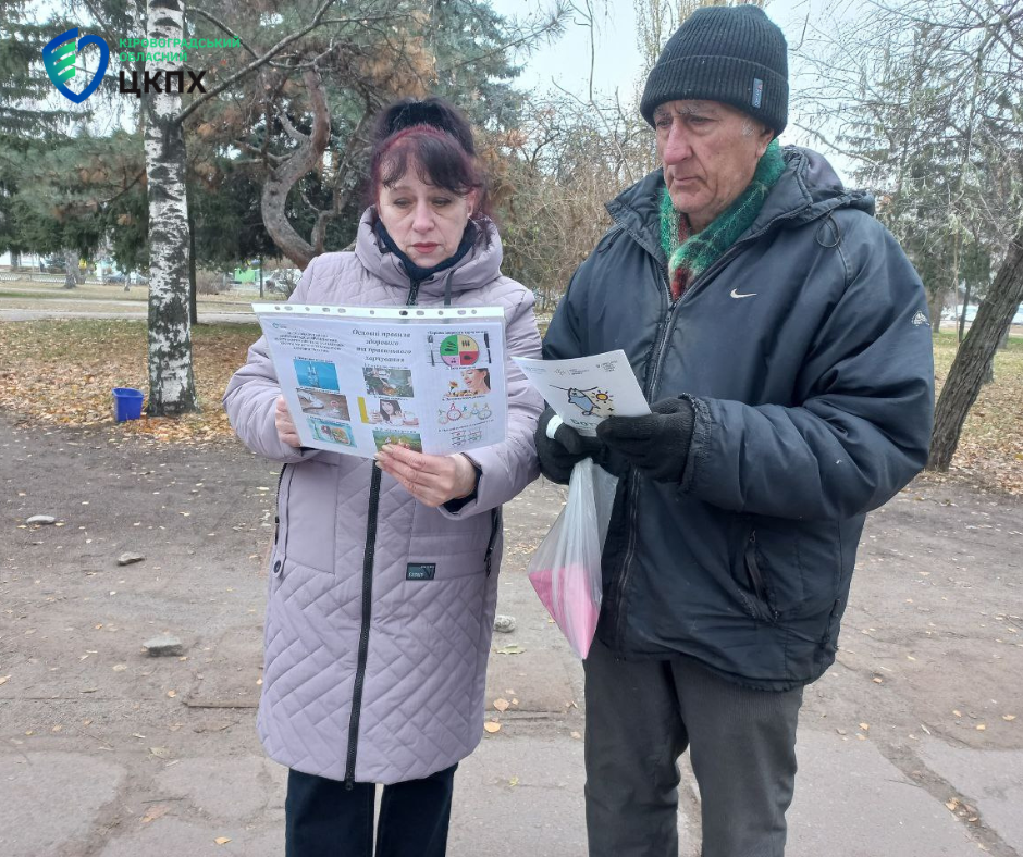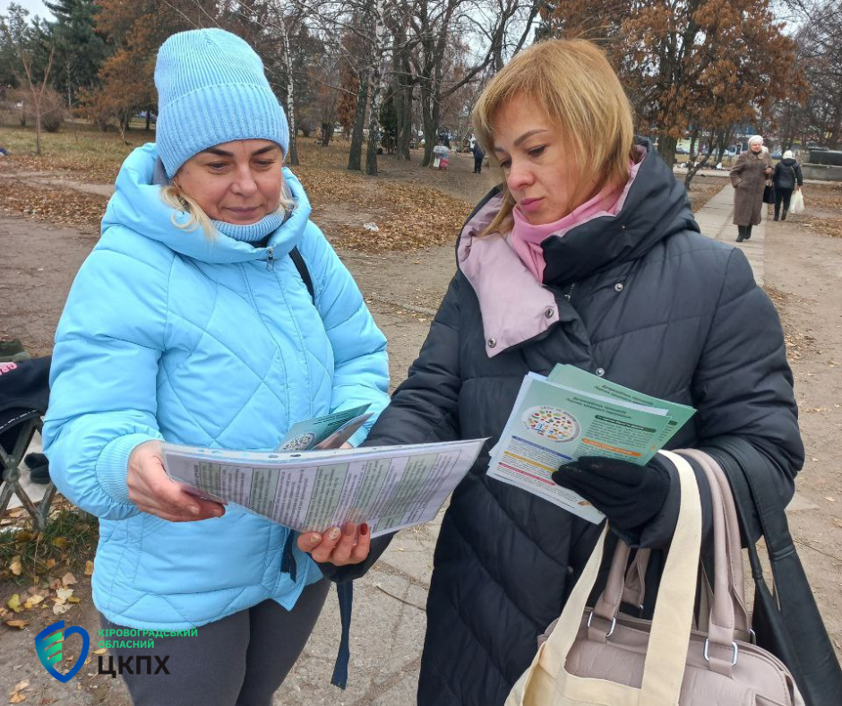 Фахівчині відділу епідеміологічного нагляду (спостереження) та профілактики неінфекційних захворювань Кіровоградського обласного центру контролю та профілактики хвороб Ольга Агапова та Ніна Синько провели роз’яснювально-консультативну роботу до Міжнародного дня боротьби з ожирінням, що відзначається 26 листопада, та поширили друковані матеріали в місцях масового скупчення кропивничан.