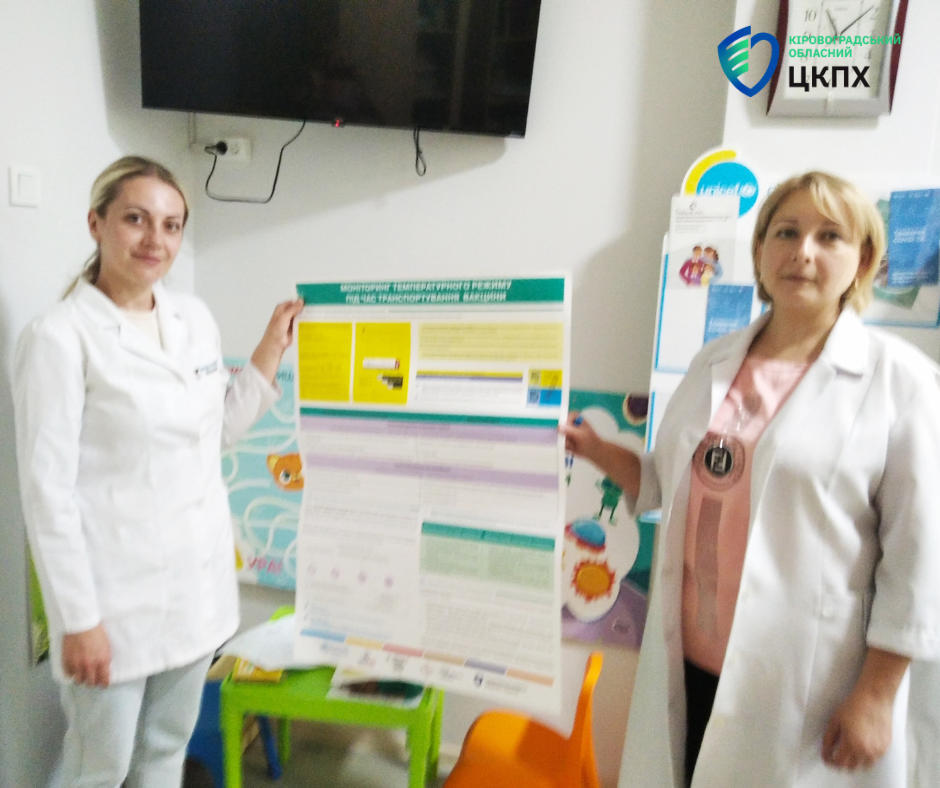 Фахівчиня Гайворонського відділення Світлана Кольченко відвідала Гайворонську амбулаторію ЗПСМ. Розтиражовано друковану продукцію «Моніторинг температурного режиму під час транспортування вакцини», «Розрахунок об’ємів вакцин та місткості холодового ланцюга», «Флаконний термоіндикатор (ФТІ)» та ін.