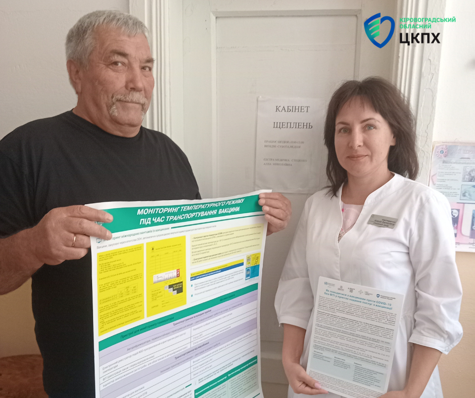 Фахівці Добровеличківського відділення Новоукраїнського райвідділу Кіровоградського обласного центру контролю та профілактики хвороб серед закладів охорони здоров’я розповсюдили тематичні буклети та плакати щодо правил дотримання температурного режиму під час транспортування, зберігання та використання імунобіологічних препаратів.