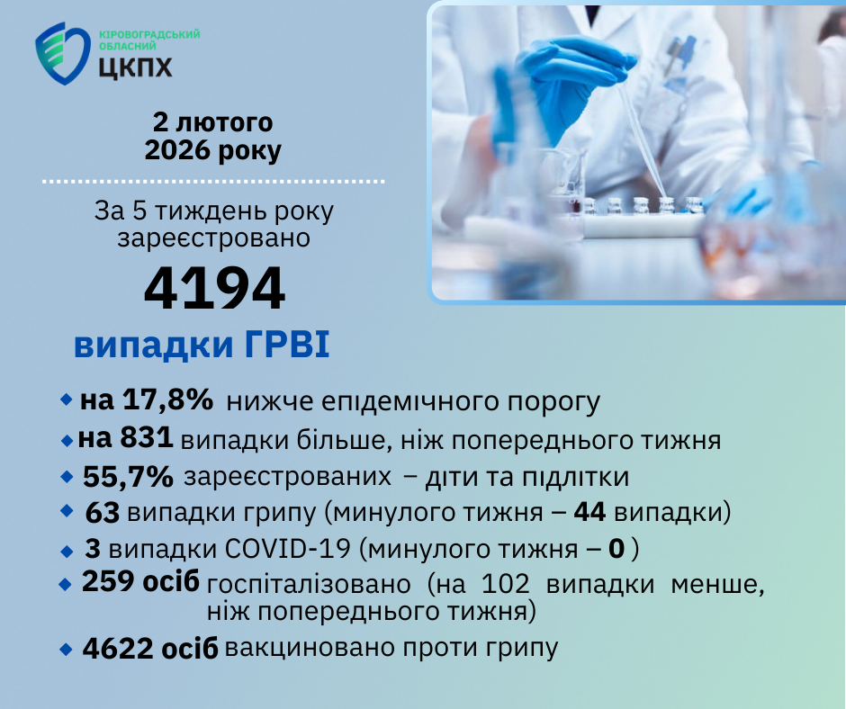 випадки ГРВІ 4194 – що на 17,8 % нижче епідемічного порогу;