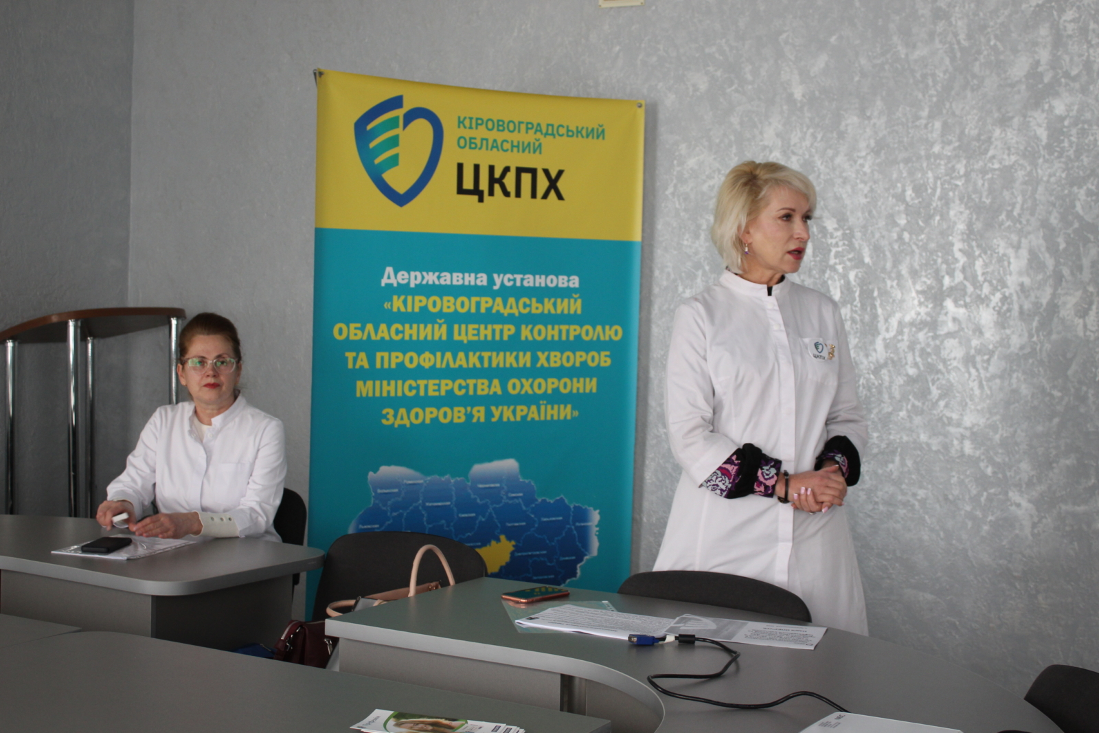 Головна державна санітарна лікарка регіону, лікарка-епідеміологиня вищої кваліфікаційної категорії, кандидатка медичних наук Надія Оперчук разом із завідувачкою відділ антимікробної резистентності та інфекційного контролю Кіровоградського обласного центру контролю та профілактики хвороб Тетяна Задорожна організували та провели навчання на тему: «Організація управління медичними відходами в закладі охорони здоров’я в системі безпеки для здоров’я працівників, профілактики інфекцій та інфекційного контролю».