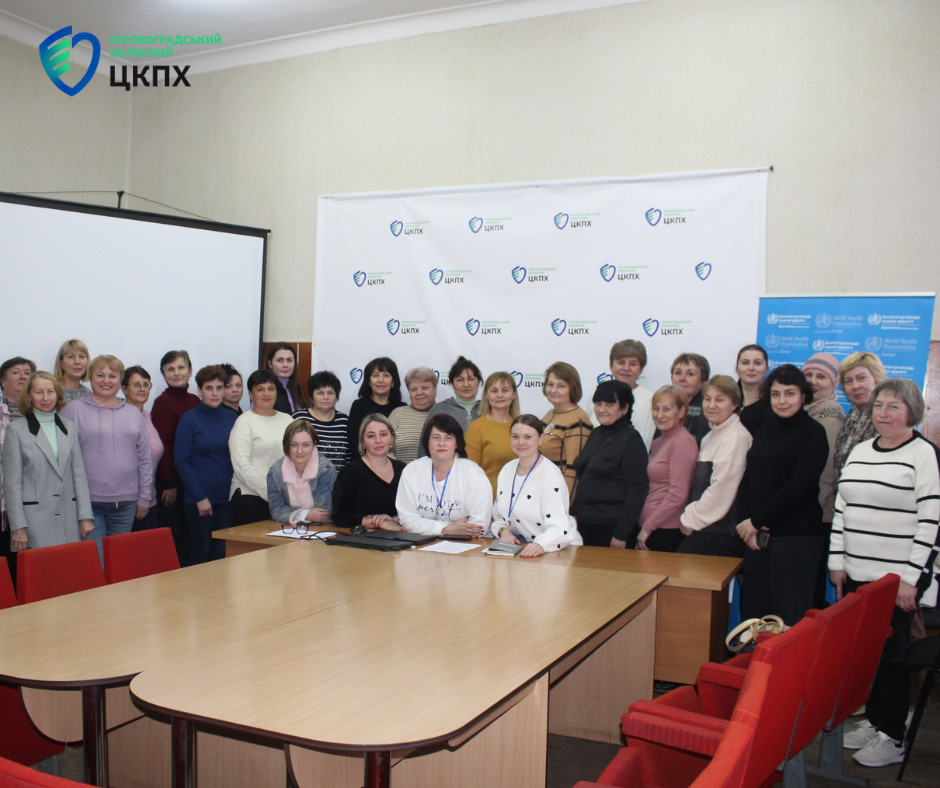 Захід провели на базі ДУ «Кіровоградський обласний центр контролю та профілактики хвороб МОЗ» для лікарів загальної практики сімейної медицини, педіатрів, медичних сестер закладів охорони здоров’я державної та приватної форм власності Кропивницької, Знам’янської, Аджамської, Олександрівської, Кам’янецької, Долинської та Катеринівської територіальних громад. Загалом – 28 осіб.