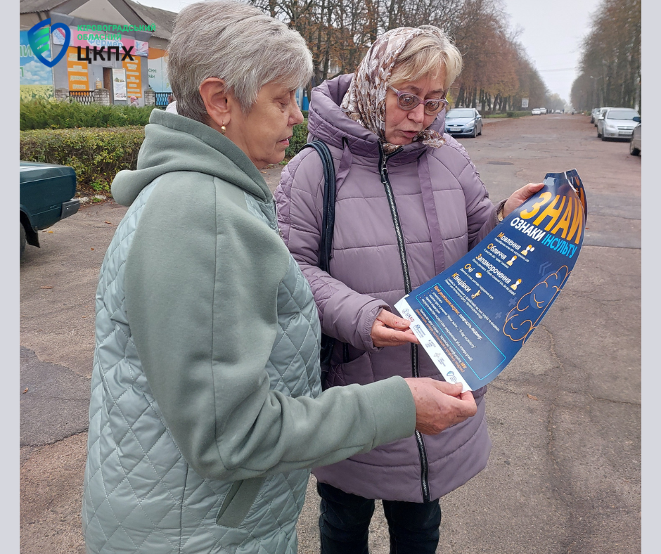 Фахівці Новомиргородського відділення Новоукраїнського відділу Кіровоградського обласного центру контролю та профілактики хвороб провели інформаційно-просвітницькі заходи серед населення Новомиргородської громади, у межах Всесвітнього тижня боротьби з інсультом.
