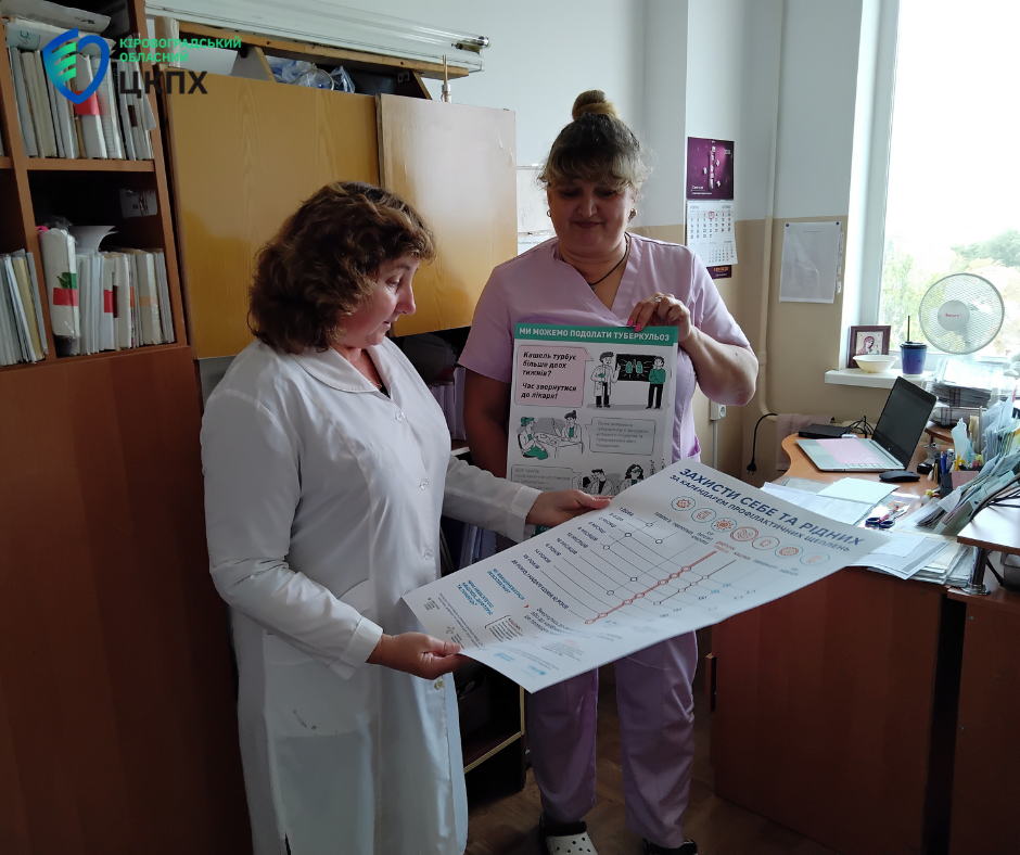 Помічниці лікаря-епідеміолога відділення епідеміологічного нагляду (спостереження) та профілактики інфекційних хвороб Олександрійського районного відділу Кіровоградського обласного центру контролю та профілактики хвороб Світлана Авраменко, Маргарита Мамалат та Олена Панченко розповсюдили друковані матеріали: плакати «Ми можемо подолати туберкульоз», лифлети «Туберкульоз – що потрібно знати батькам, щоб зберегти здоров’я своїх дітей».