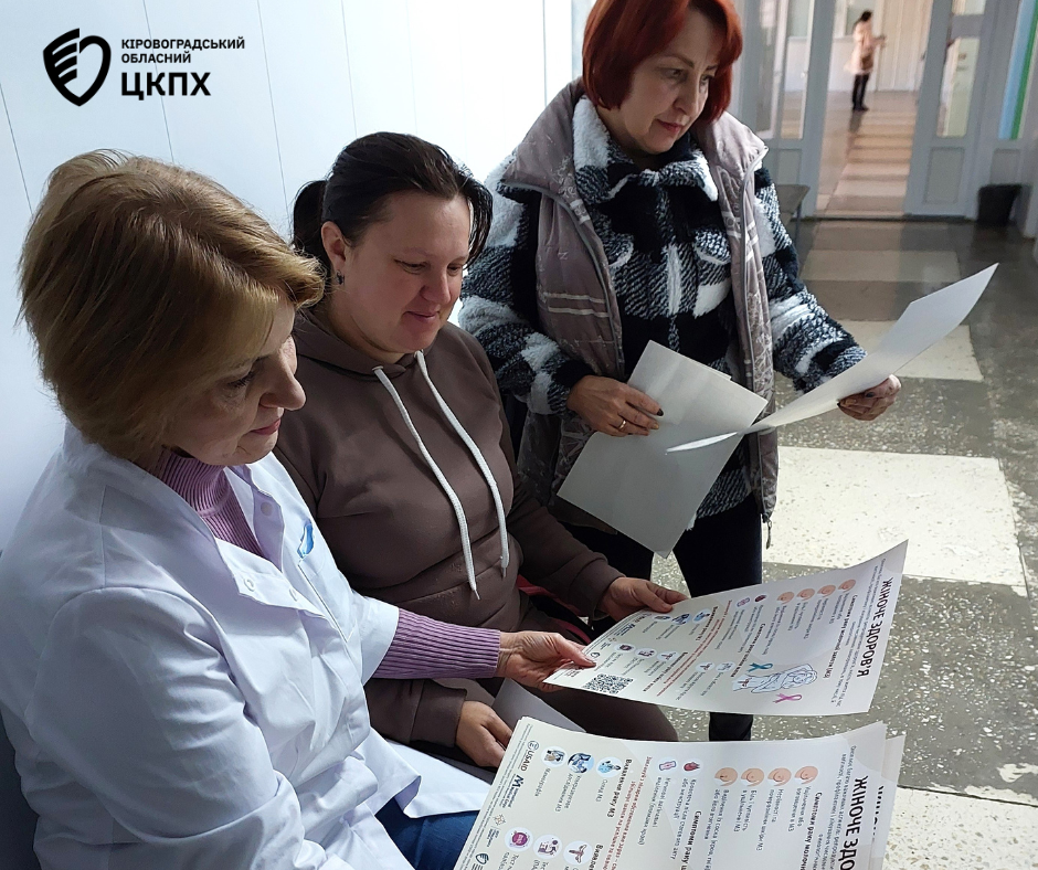 Фахівці відділення поспілкувалися з відвідувачами лікаря-гінеколога, сімейними лікарями, соціальним працівником медичної мобільної команди благодійної організації «100% життя Кропивницький» та мешканками Новомиргородської громади.