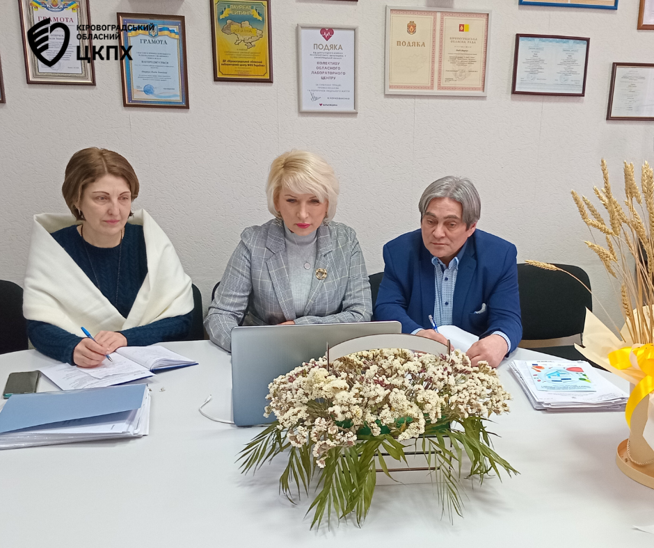 Головна державна санітарна лікарка Кіровоградської області Надія Оперчук разом із спеціалістами Центру – завідувачем відділу епідеміологічного нагляду та профілактики неінфекційних захворювань Дмитром Орловим та завідувачкою відділу організації лабораторної роботи, системи управління якістю та метрологічного забезпечення Оленою Черненко долучились до онлайн зустрічі «Виконання статутних повноважень відділами епідеміологічного нагляду за неінфекційними хворобами (функції, кадри, ресурси, можливості та перспективи)”.