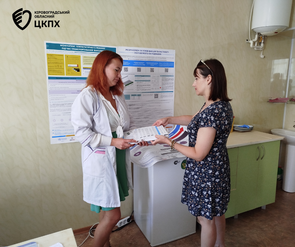 Фахівці Світловодського відділення Олександрійського районного відділу Кіровоградського ОЦКПХ розповсюджували друковані матеріали щодо правил дотримання «холодового ланцюга» серед медпрацівників закладів КНП «ЦПМСД Світловодської міської ради», КНП «ЦПМСД Великоандрусівської сільської ради», ФОП Сергєєв С.О. та ФОП Яковенко Є.П.