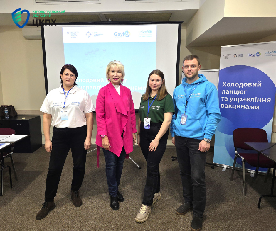 Головна державна санітарна лікарка Кіровоградської області Надія Оперчук разом з лікарками-епідеміологинями відділу імунопрофілактики Кіровоградського обласного центру контролю та профілактики хвороб Крістіною Балаєвич і Віталією Козирєвою та регіональним консультантом ЮНІСЕФ Віктором Пустовітом організували та провели черговий тренінг на тему: «Холодовий ланцюг та управління вакцинами».
