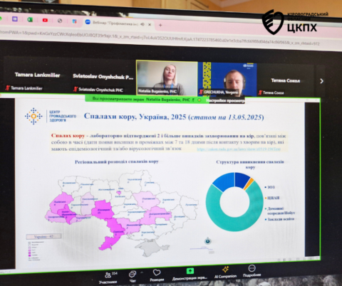 Головна державна санітарна лікарка області Надя Оперчук та лікарі відділів імунопрофілактики та епідеміологічного нагляду та профілактики інфекційних хвороб Кіровоградського обласного центру контролю та профілактики хвороб взяли участь у вебінарі на тему: «Профілактика інфекцій та інфекційний контроль за кором».