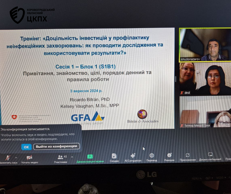 Фахівці відділу епідеміологічного нагляду (спостереження) та профілактики неінфекційних захворювань Кіровоградського обласного центру контролю та профілактики хвороб взяли участь у першій сесії вебінару на тему «Доцільність інвестицій у профілактику неінфекційних захворювань: як проводити дослідження та використовувати результати?».