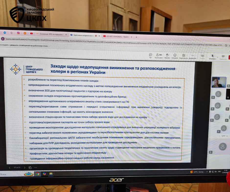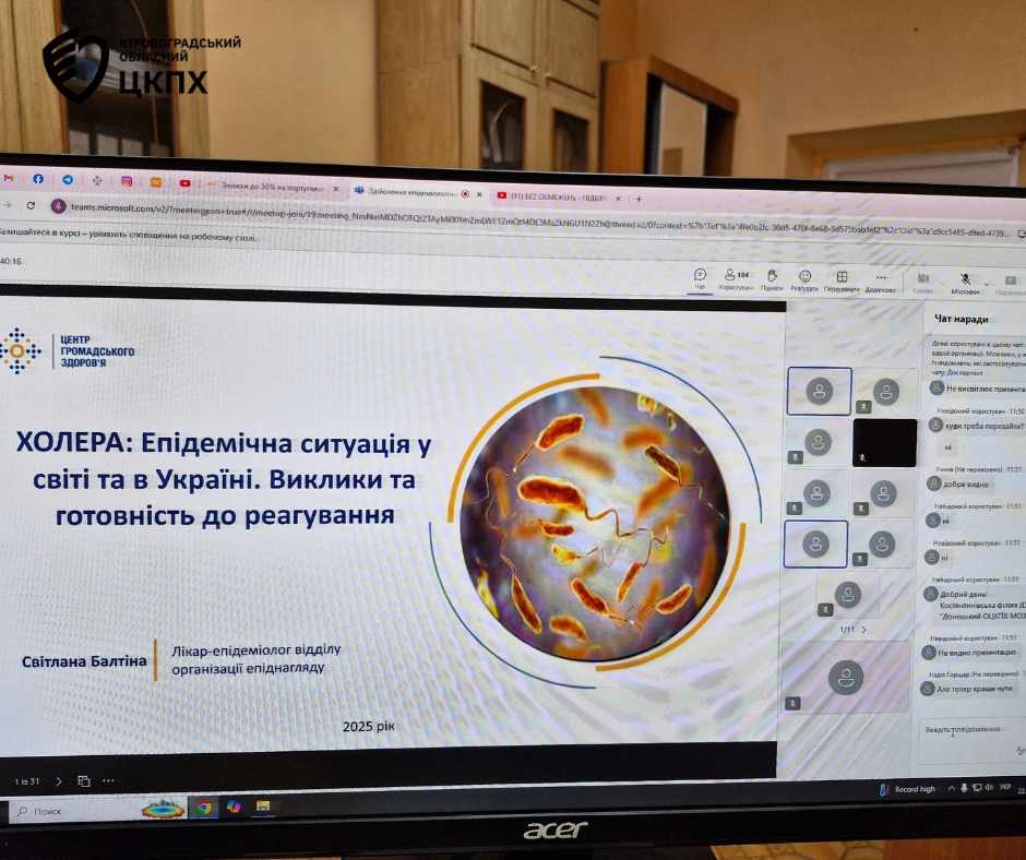 Головна державна санітарна лікарка області Надія Оперчук та фахівці Кіровоградського обласного центру контролю та профілактики хвороб взяли участь у вебінарі щодо ключових аспектів здійснення епідеміологічного нагляду за холерою та сучасних підходів до її лабораторної діагностики.