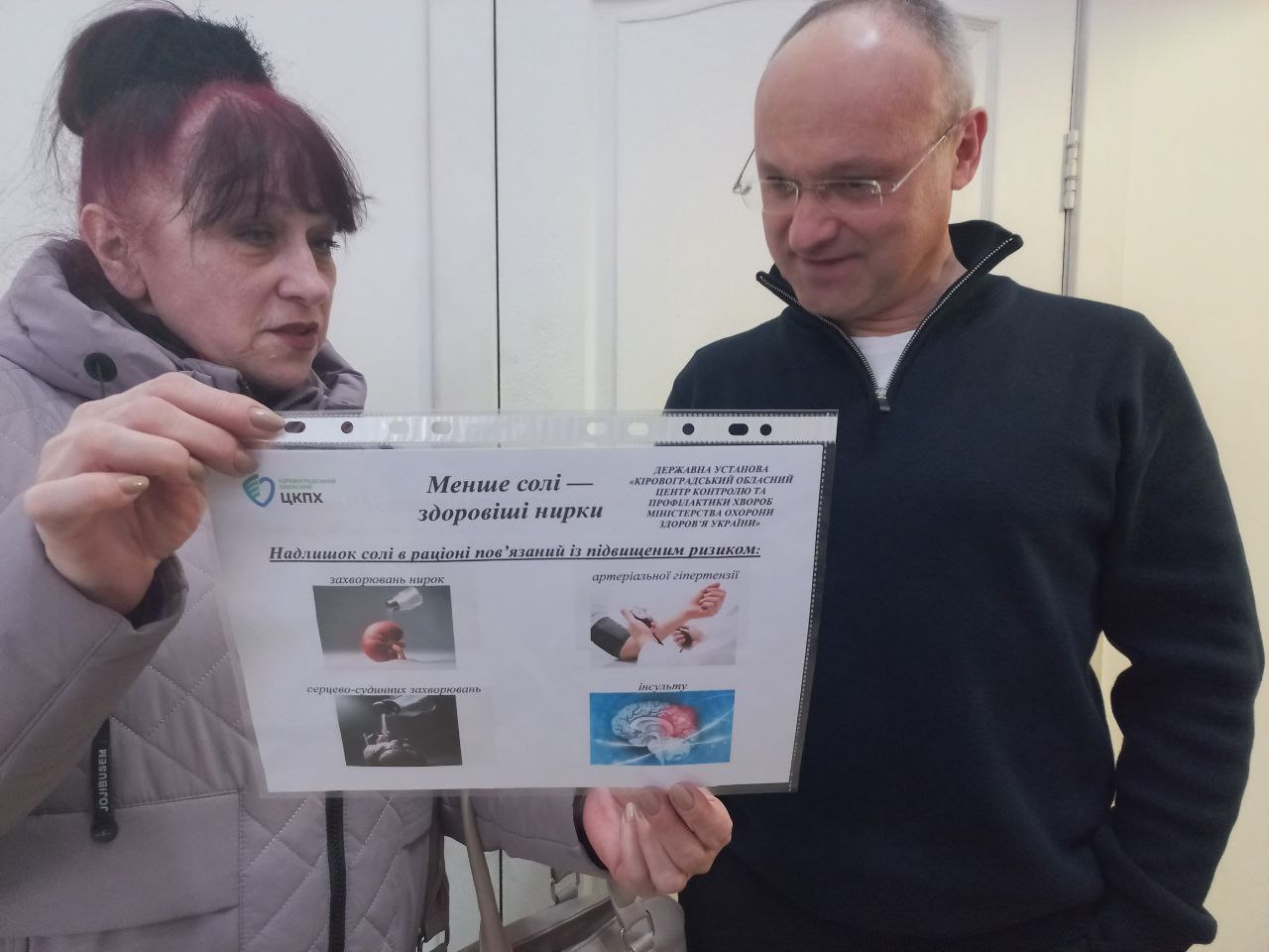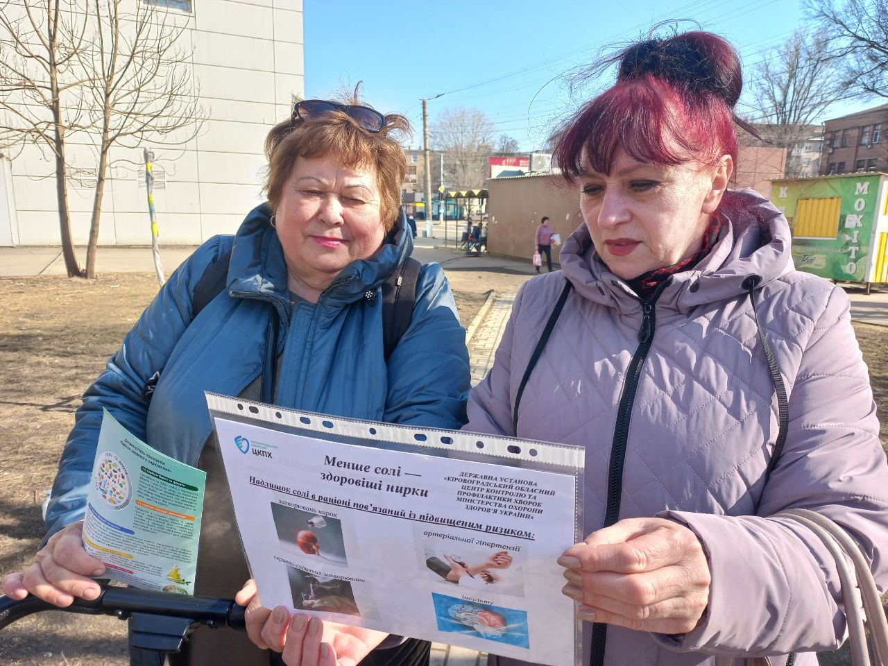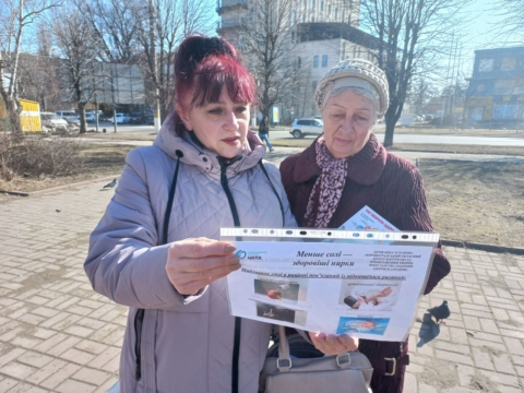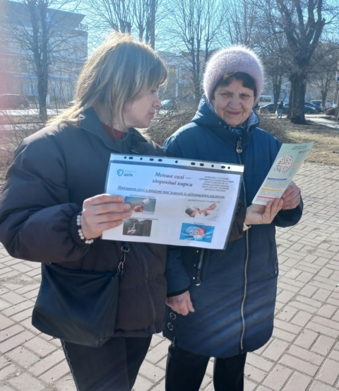 Фахівчині відділу епідеміологічного нагляду та профілактики неінфекційних хвороб Кіровоградського обласного центру контролю та профілактики хвороб Ольга Агапова та Ніна Синько провели інформаційно-просвітницьку роботу серед жителів Кропивницького та гостей області. Захід відбувся до Всесвітнього дня нирки та в межах Всесвітнього тижня обізнаності про сіль.