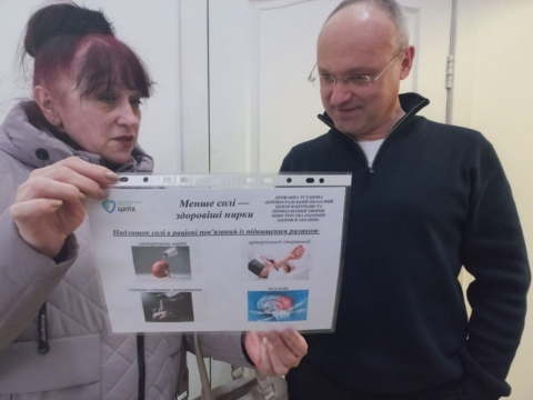 Кропивничанам роздали тематичні друковані матеріали з порадами щодо здорового харчування та рекомендаціями зі зменшення споживання солі. Фахівчині наголосили, що дорослій людині рекомендовано вживати не більше 5 грамів солі на добу — приблизно одну чайну ложку з урахуванням солі, що міститься у готових продуктах, таких як ковбаси та м’ясні напівфабрикати, сири, соуси, кетчупи, консервовані продукти, фаст-фуд, снеки.