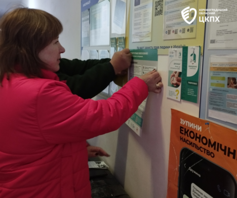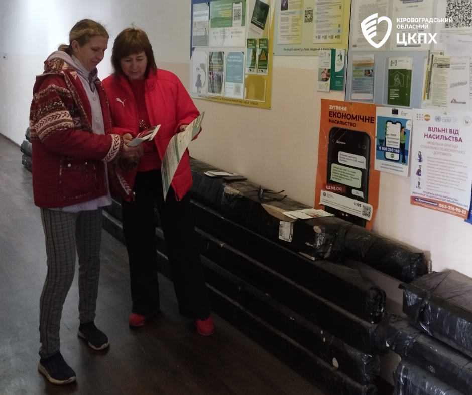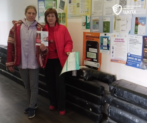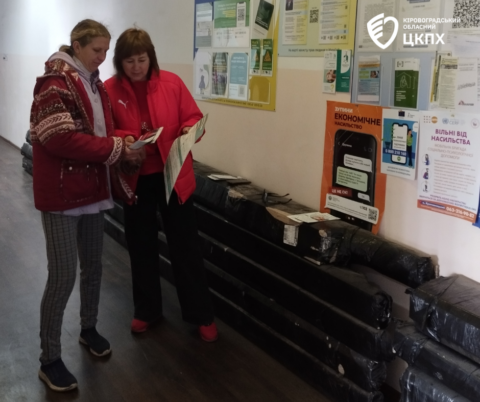 Під час роботи мали змогу зустрітися з представницями Кіровоградського Товариства Червоного Хреста України Наталією Коваль та Галиною Ніколаєнко, через яких передали інформаційні матеріали – тематичні буклети, плакати, брошури – для осіб з інвалідністю та людей похилого віку, які потребують допомоги соціальних працівників.