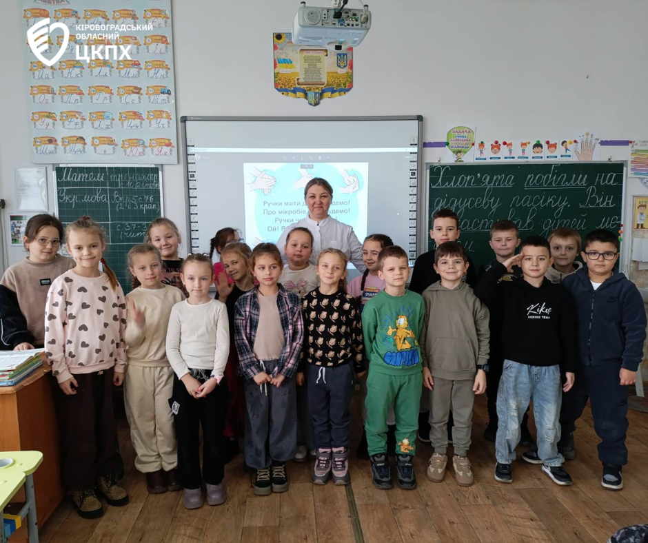 Фахівці Гайворонського відділення Голованівського районного відділу відвідали КЗ «Гайворонський ліцей № 1» та провели лекцію на тему: «Гігієнічне миття рук» для школярів молодших класів.