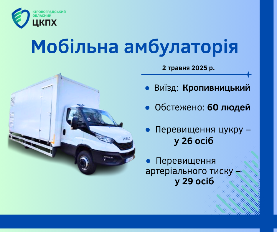 Мобільна амбулаторія ДУ «Кіровоградський обласний центр контролю та профілактики хвороб МОЗ України» свій черговий виїзд відпрацювала у Кропивницькому.