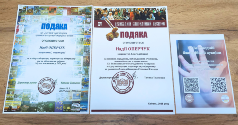 За меценацтво, активну участь у проведенні ювілейного благодійного аукціону, партнерську підтримку, плідну співпрацю та розвиток благодійництва Степової Елади Надія Оперчук отримала почесні подяки від організаторів заходу.