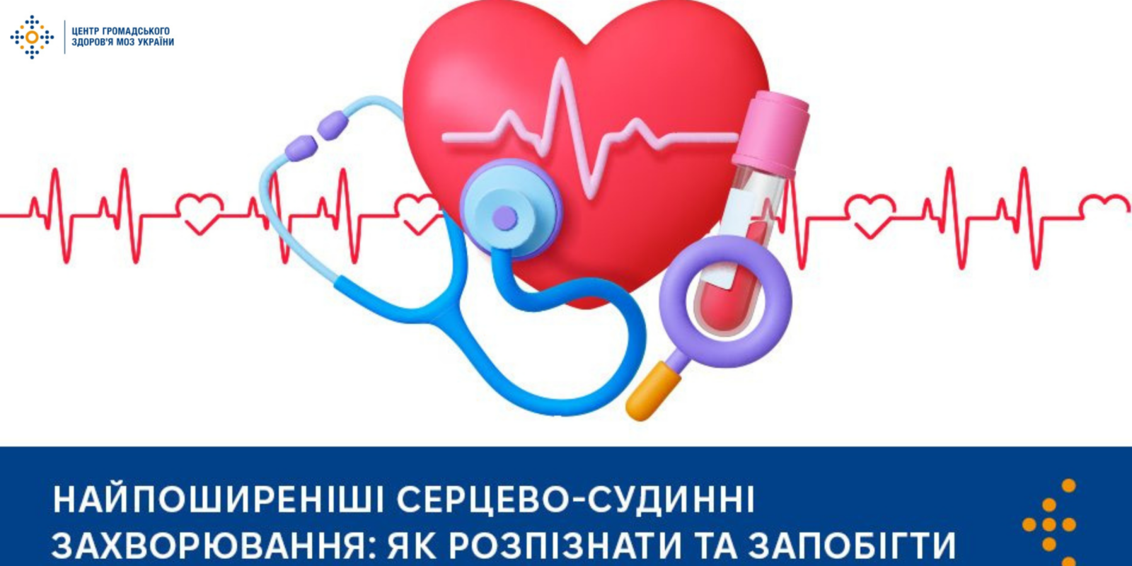 ССЗ – група хвороб серця і кровоносних судин, до якої входять ішемічна хвороба серця (стенокардія, інфаркт міокарда), артеріальна гіпертензія, ураження судин головного мозку (інсульт), ревматична хвороба серця та інші патології. Понад чотири з п’яти смертей від ССЗ трапляються внаслідок інфаркту та інсульту.