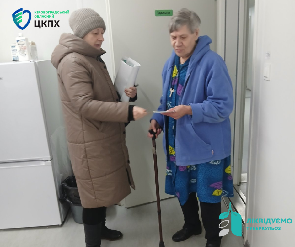 Помічниці лікаря-епідеміолога Кропивницького районного відділу Кіровоградського обласного центру контролю та профілактики хвороб Світлана Білоруська та Валентина Мережена провели інформаційно-роз’яснювальну роботу серед внутрішньо переміщених осіб у місці компактного проживання ВПО на території Знам’янської об’єднаної територіальної громади у межах місяця подолання туберкульозу.