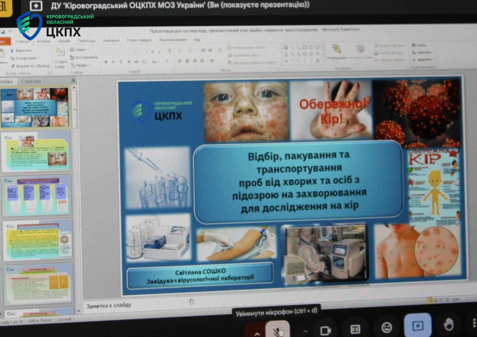 Головна державна санітарна лікарка Кіровоградської області Надія Оперчук і фахівці відділу епідеміологічного нагляду (спостереження) та профілактики інфекційних хвороб організували та провели обласний вебінар щодо питань епідеміології, імунізації та лабораторної діагностики кору. До заходу долучилися фахівці закладів охорони здоров’я області, районних відділів та відділень Кіровоградського обласного центру контролю та профілактики хвороб.