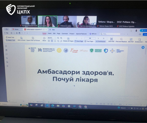 Головна державна санітарна лікарка Кіровоградської області Надія Оперчук спільно з фахівцями Центру долучилися до онлайн-зустрічі в межах проєкту «Амбасадори здоров’я».