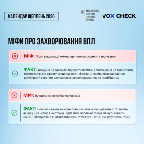 – Вакцинуватися. З 1 січня 2026 року вакцинація проти ВПЛ-інфекції розпочнеться в Україні і буде безоплатною для дівчат 12-13 років включно.