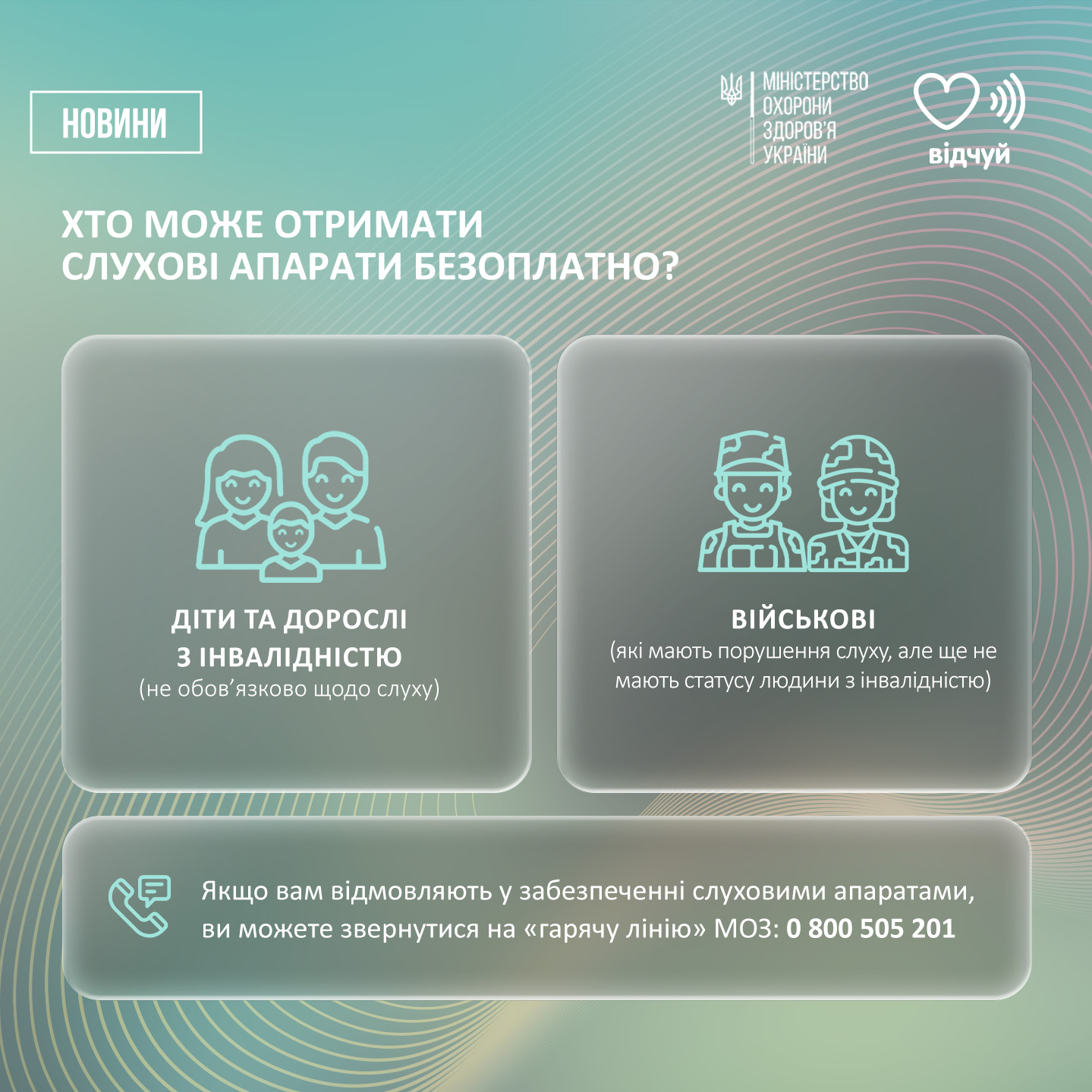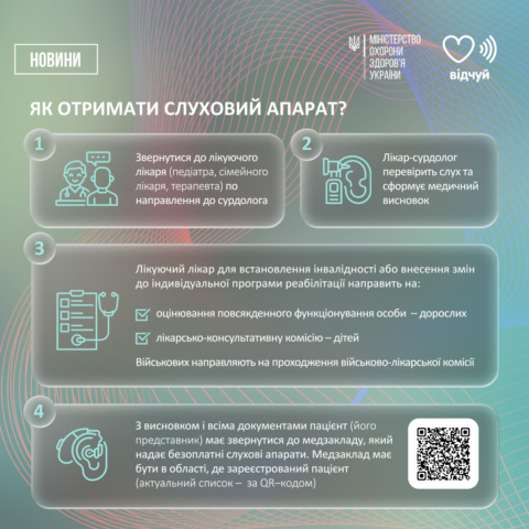 Крім того, МОЗ разом із ГО «Відчуй», розробили зручний путівник, у якому покроково описано, як отримати слуховий апарат у вашому регіоні.