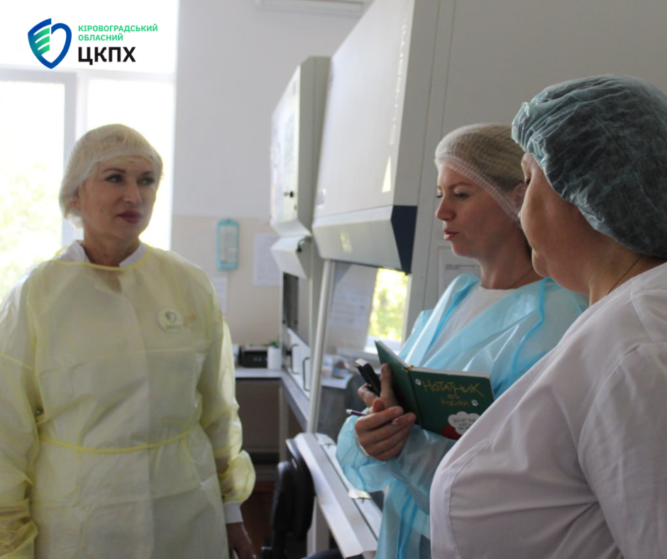 Кіровоградський обласний центр контролю та профілактики хвороб відвідала з моніторинговим візитом національна консультантка Бюро ВООЗ в Україні Олена Сидоренко. Разом з головною державною санітарною лікаркою Кіровоградської області Надією Оперчук вони оглянули роботу лабораторій Центру.