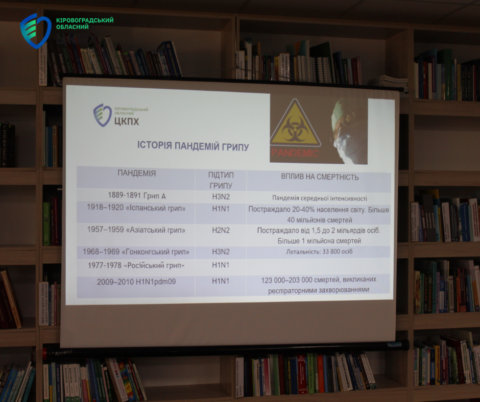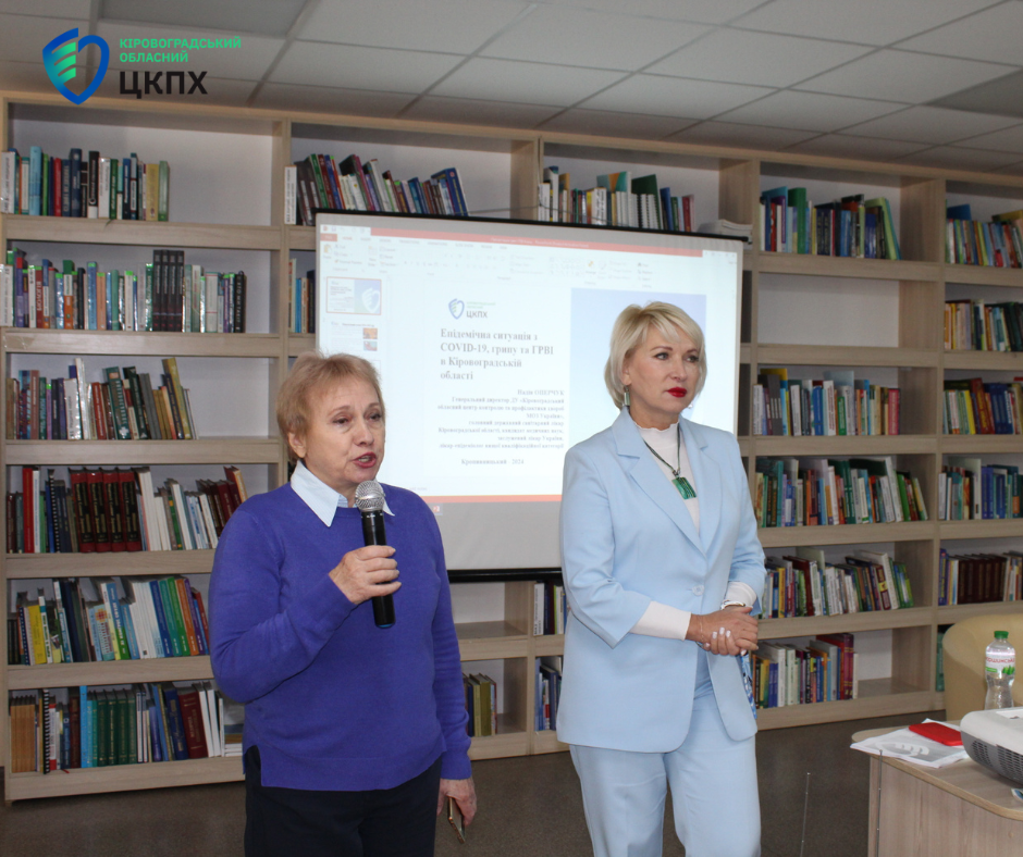 Головна державна санітарна лікарка області Надія Оперчук провела просвітницьку лекцію на тему «Епідемічна ситуація з CОVID-19, грипом та ГРВІ в Кіровоградській області» для студентів-першокурсників Донецького державного університету внутрішніх справ. Зустріч відбулася в обласній універсальній науковій бібліотеці ім. Дмитра Чижевського.