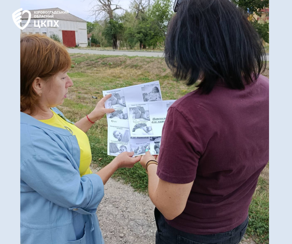 Фельдшерка санітарна відділення епідеміологічного нагляду та профілактики неінфекційних хвороб Кам’янецького відділення Кропивницького районного відділу Кіровоградського обласного центру контролю та профілактики хвороб Тетяна Васильченко провела інформаційно-просвітницькі бесіди з жителями Кам’янецької територіальної громади на тему: «Користь грудного вигодовування для матері і дитини», «Чому потрібно підтримуваним грудне вигодовування?» та «Переваги материнського молока для дитини».